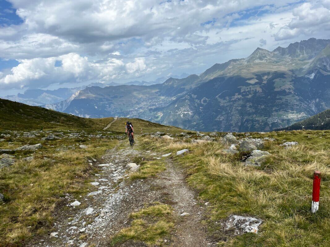 Cominciamo a programmare il tutto. Apriamo Komoot e cerchiamo di dividere al meglio le tappe in modo da avere un dislivello omogeneo ogni giorno. E poi cominciamo a contattare il rifugi e i campeggi sparsi sul percorso. Dopo mille chiamate, fatte di incomprensioni dovute all’incompatibilità linguistica fra l’inglese, che parlavamo noi, e il francese, che parlano in quel cantone svizzero, riusciamo a prenotare. Abbiamo prenotato in un campeggio vicino al lago di Mauvoisin e alla famosissima Cabane de Mille, un nido d’aquila appollaiato a 2400 e qualcosa metri.